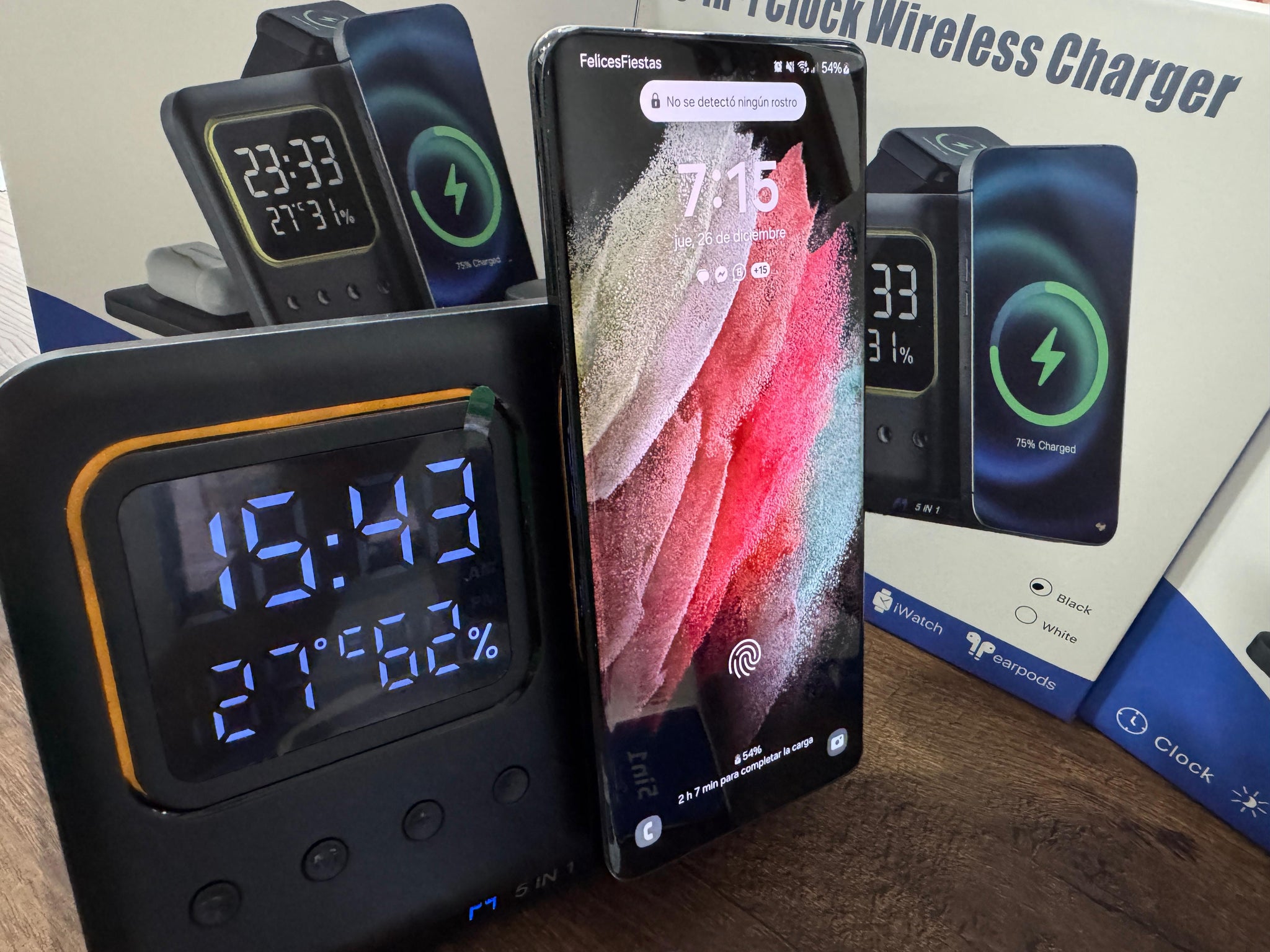 Función principal: Cargador inalámbrico multifunción con reloj despertador